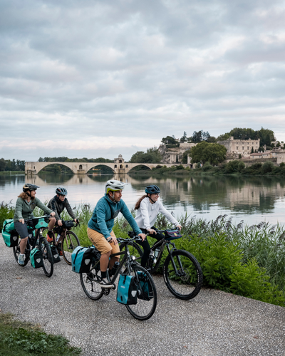 À l’approche d’Avignon, le décor change encore : la lumière devient plus intense, les senteurs de garrigue flottent dans l’air et le climat méditerranéen s’installe. La cité des Papes, avec son Palais des Papes, le Pont Saint-Bénézet et ses remparts médiévaux, offre une halte incontournable où l’histoire et la grandeur de la Provence s’expriment pleinement. Les cyclistes peuvent également profiter des dégustations de vins célèbres comme les Châteauneuf-du-Pape, qui symbolisent l’identité viticole de la région.