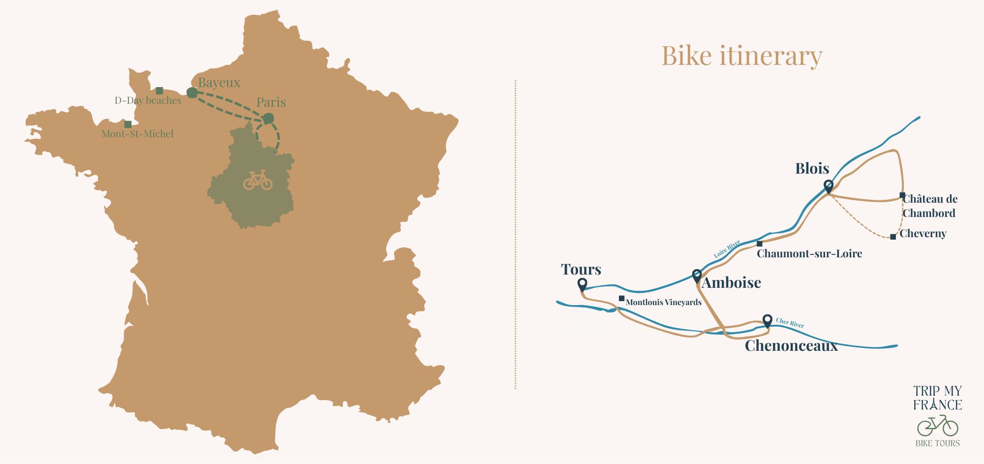 This immersive journey through France introduces you to some of the country’s most iconic regions. Begin in the Loire Valley, cycling through a landscape shaped by royal history, magnificent châteaux, and the gentle curves of France’s longest river.